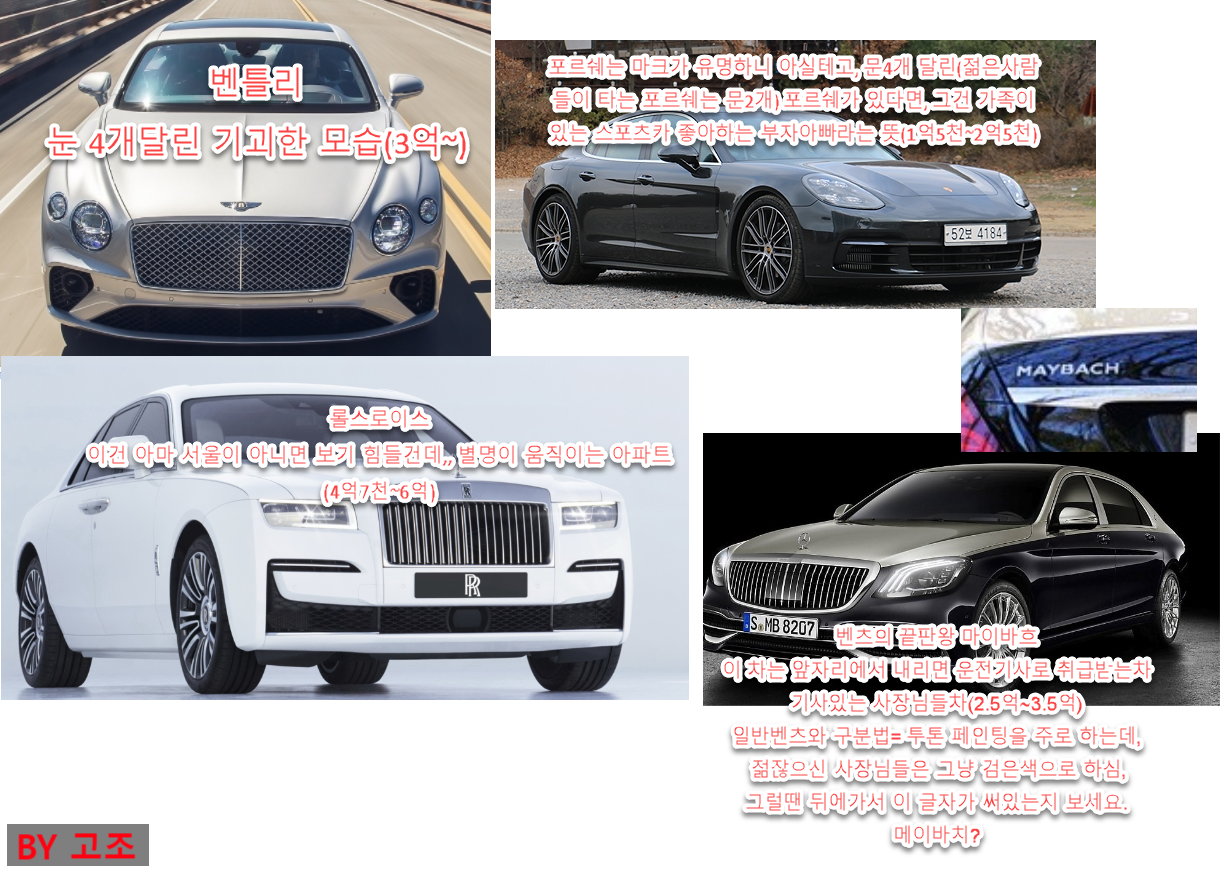3. 최상위급 차량들은 2대만 있어도 그 단지는 '찐'일 가능성이 높다. (단, 마세라티는 함정일 수 있으니 유의)