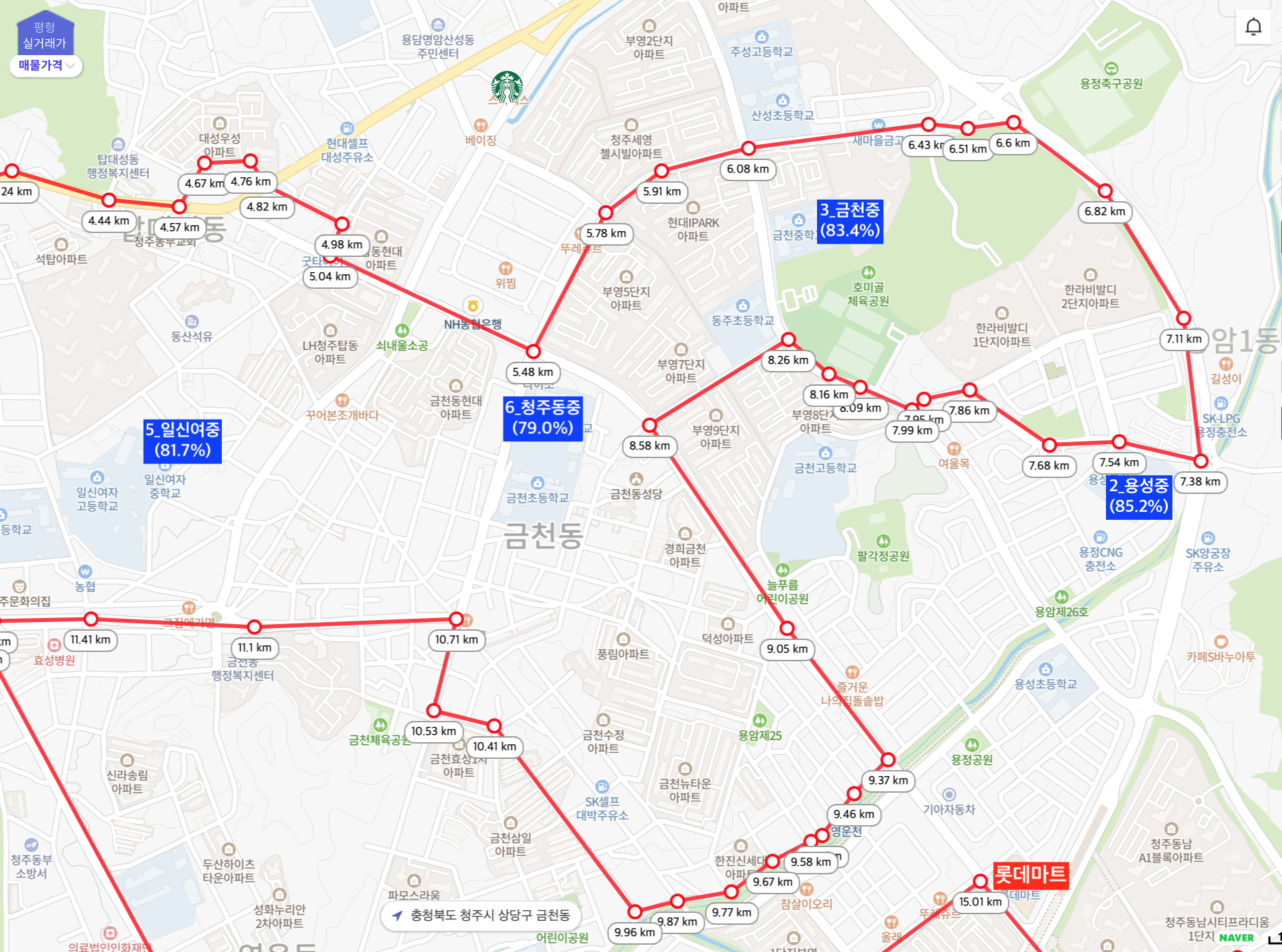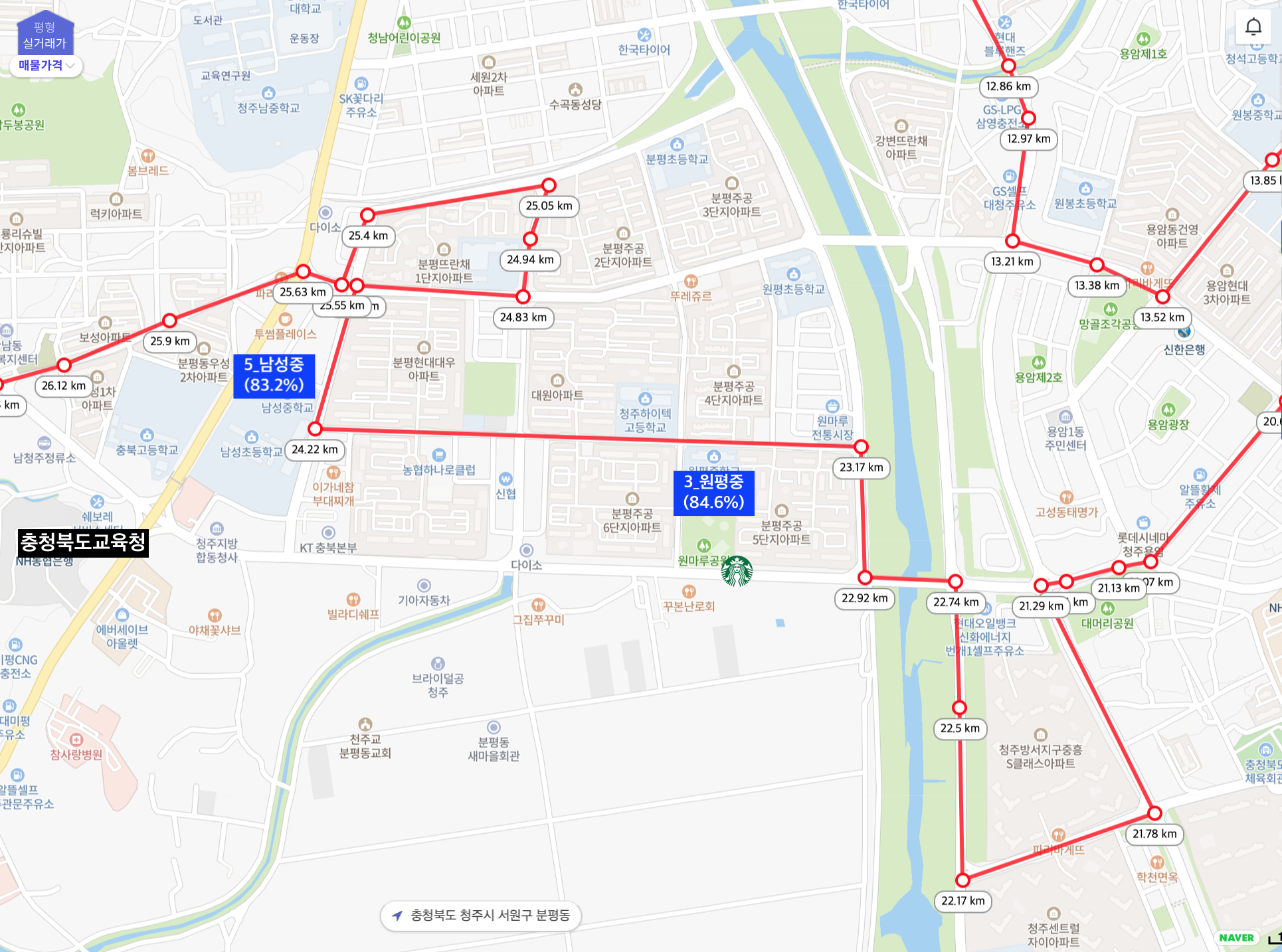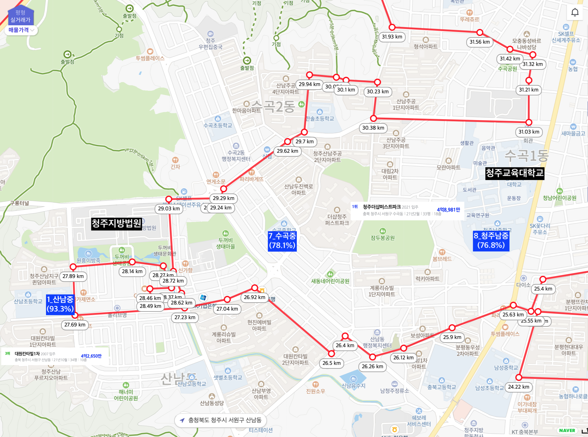게다가 서원구 1등 학군 산남중(93.3%)까지!
