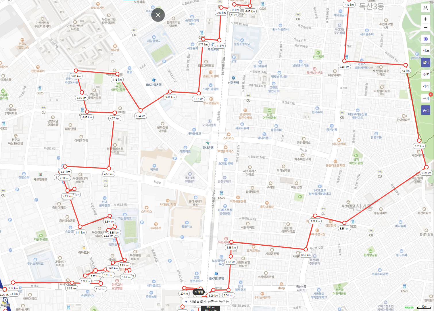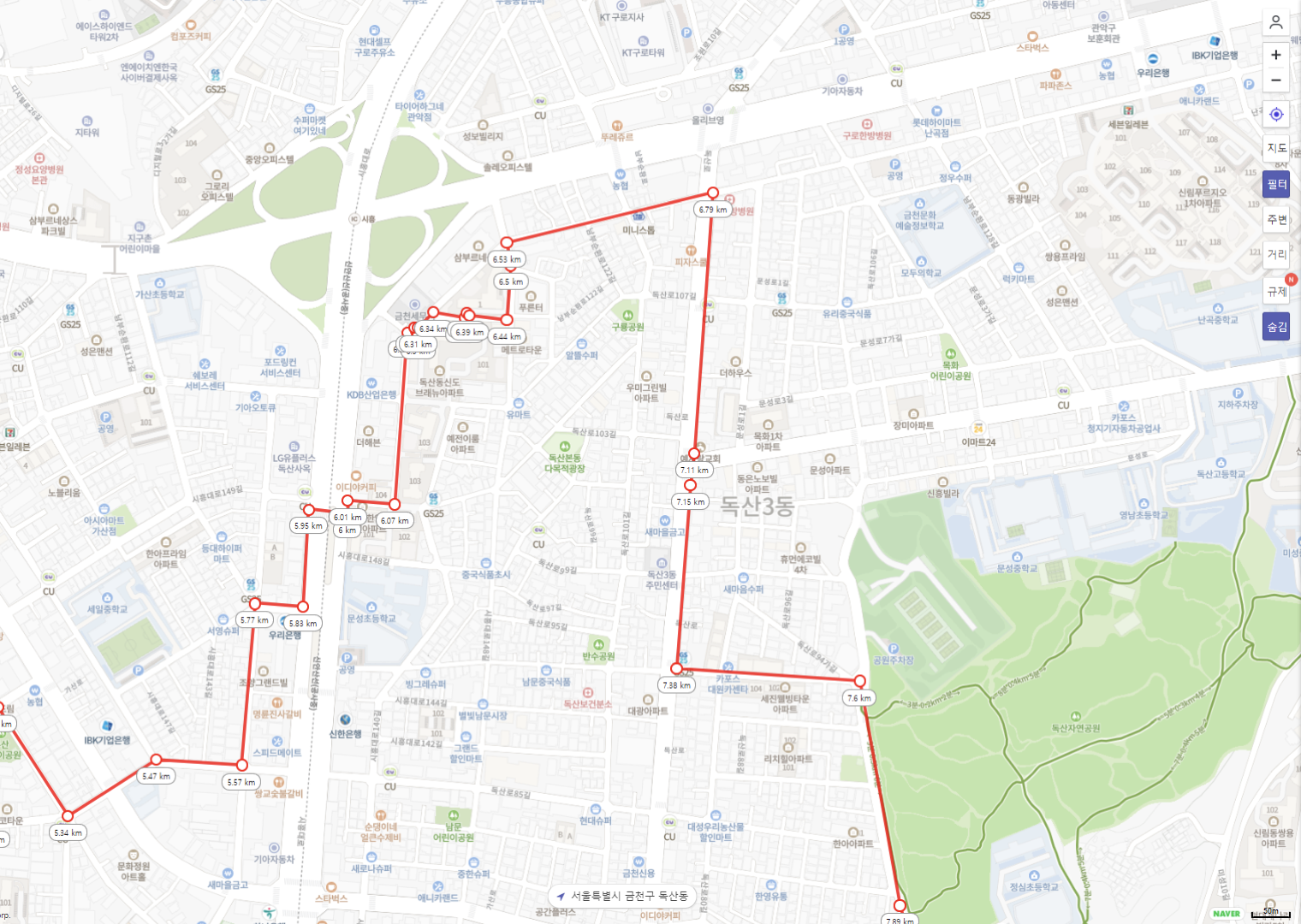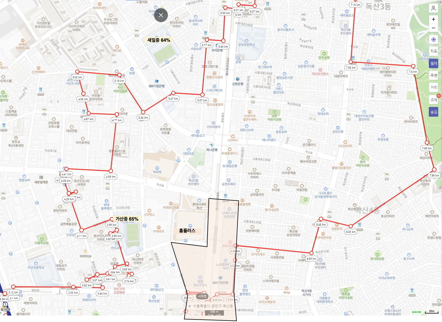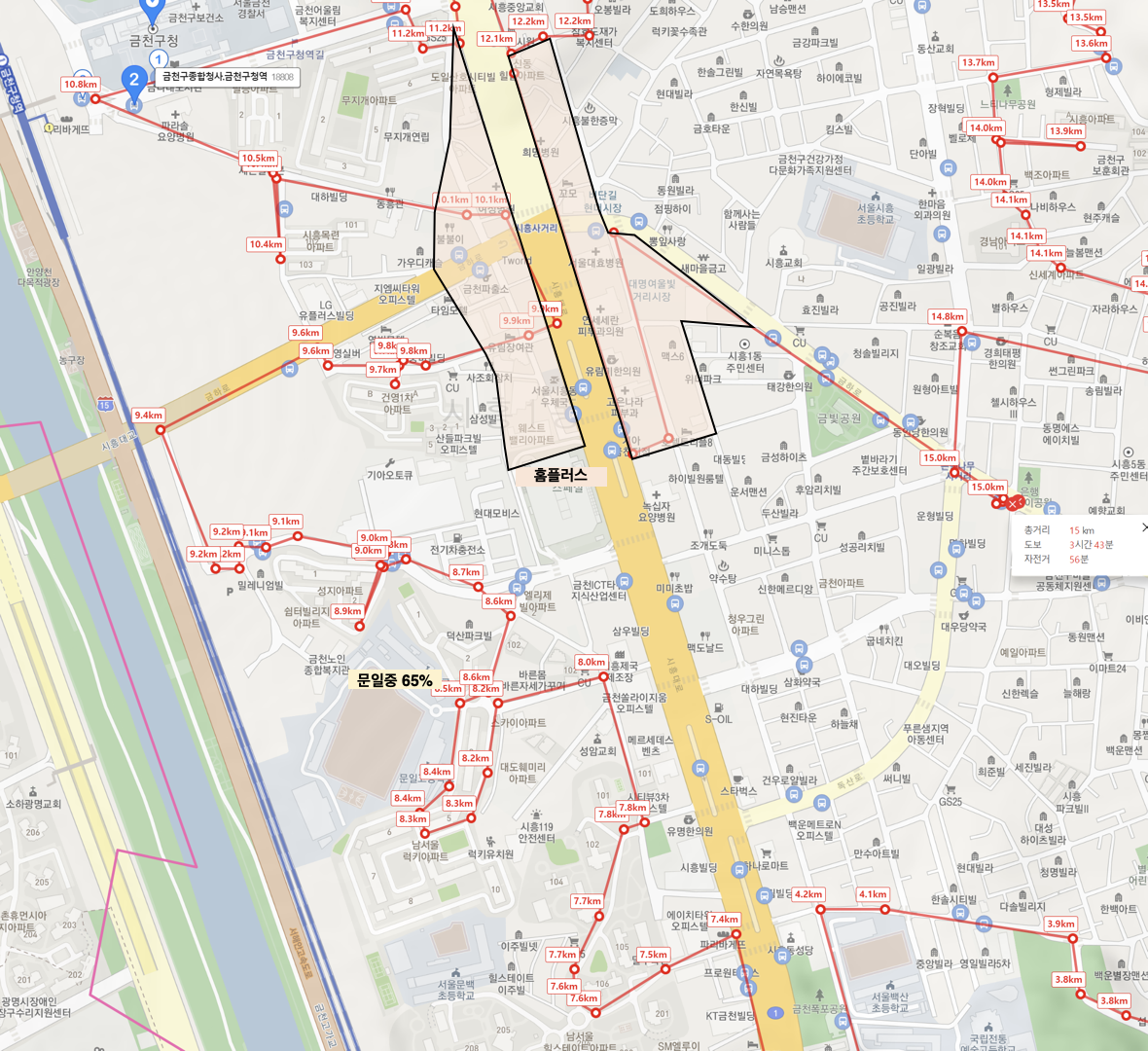 가산동 다녀오느라 루트랑 다르게 세일중(65%) 위쪽으로 해서 쭉 내려왔고 한아프라임아파트 거쳐