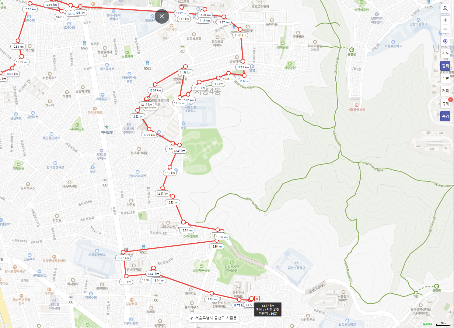 루트랑 다르게 산기슭까지 쭉 올라서가서 금천녹색광장 ㄸㅏ라 쭉~~ 내려갔다.
